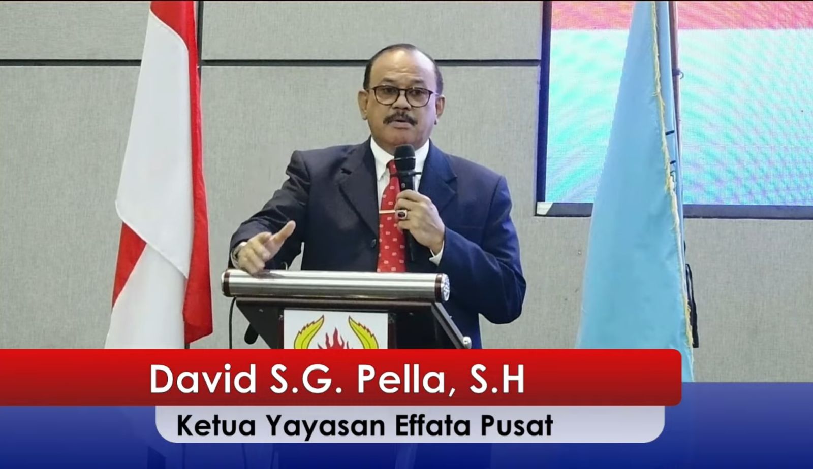 Ketua Yayasan Effata Pusat, Bapak David S.G. Pella, S.H., menutup rangkaian sambutan dengan pesan yang menyentuh hati. Beliau berbicara tentang dedikasi yayasan dalam menyediakan wadah pendidikan yang inklusif dan berkualitas di NTT.